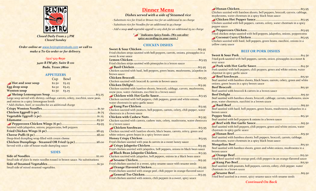 Beijing Bistro - Buda Menu
